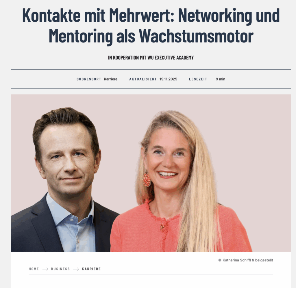 Das Cross Mentoring Programm fördert Führungskräfte durch gezielten Austausch und langjährige Netzwerkkompetenz. Die Masterclass NETZWERKEN vermittelt praxisnah, wie man tragfähige Beziehungen strategisch aufbaut und pflegt.